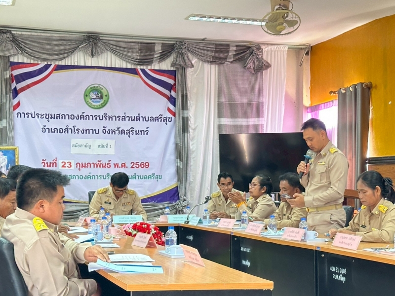 วันจันทร์ที่ 23 กุมภาพันธ์ 2569 เวลา 09.00 น. องค์การบริหารส่วนตำบลศรีสุข ได้ประชุมสภาสมัยสามัญ สมัยที่ 1 ครั้งที่ 1 ประจำปี พ.ศ. 2569 ณ ห้องประชุมสภาองค์การบริหารส่วนตำบลศรีสุข เพื่อให้นายกองค์การบริหารส่วนตำบลศรีสุขได้แถลงนโยบายต่อสภาองค์การบริหารส่วนตำบลศรีสุข