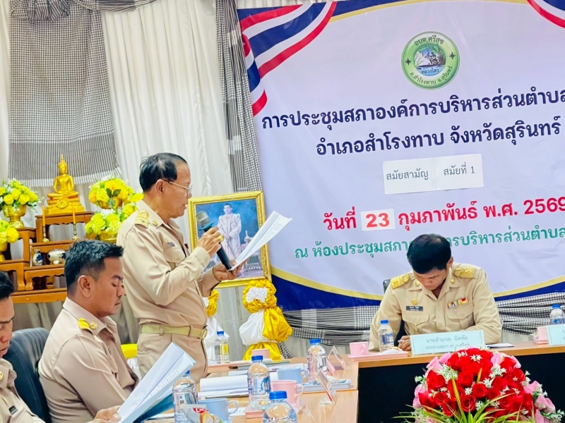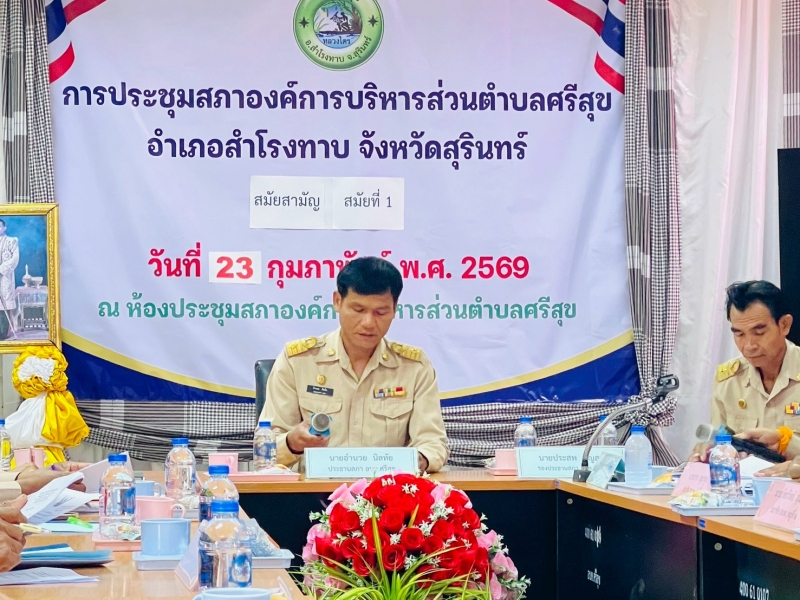 วันจันทร์ที่ 23 กุมภาพันธ์ 2569 เวลา 09.00 น. องค์การบริหารส่วนตำบลศรีสุข ได้ประชุมสภาสมัยสามัญ สมัยที่ 1 ครั้งที่ 1 ประจำปี พ.ศ. 2569 ณ ห้องประชุมสภาองค์การบริหารส่วนตำบลศรีสุข เพื่อให้นายกองค์การบริหารส่วนตำบลศรีสุขได้แถลงนโยบายต่อสภาองค์การบริหารส่วนตำบลศรีสุข